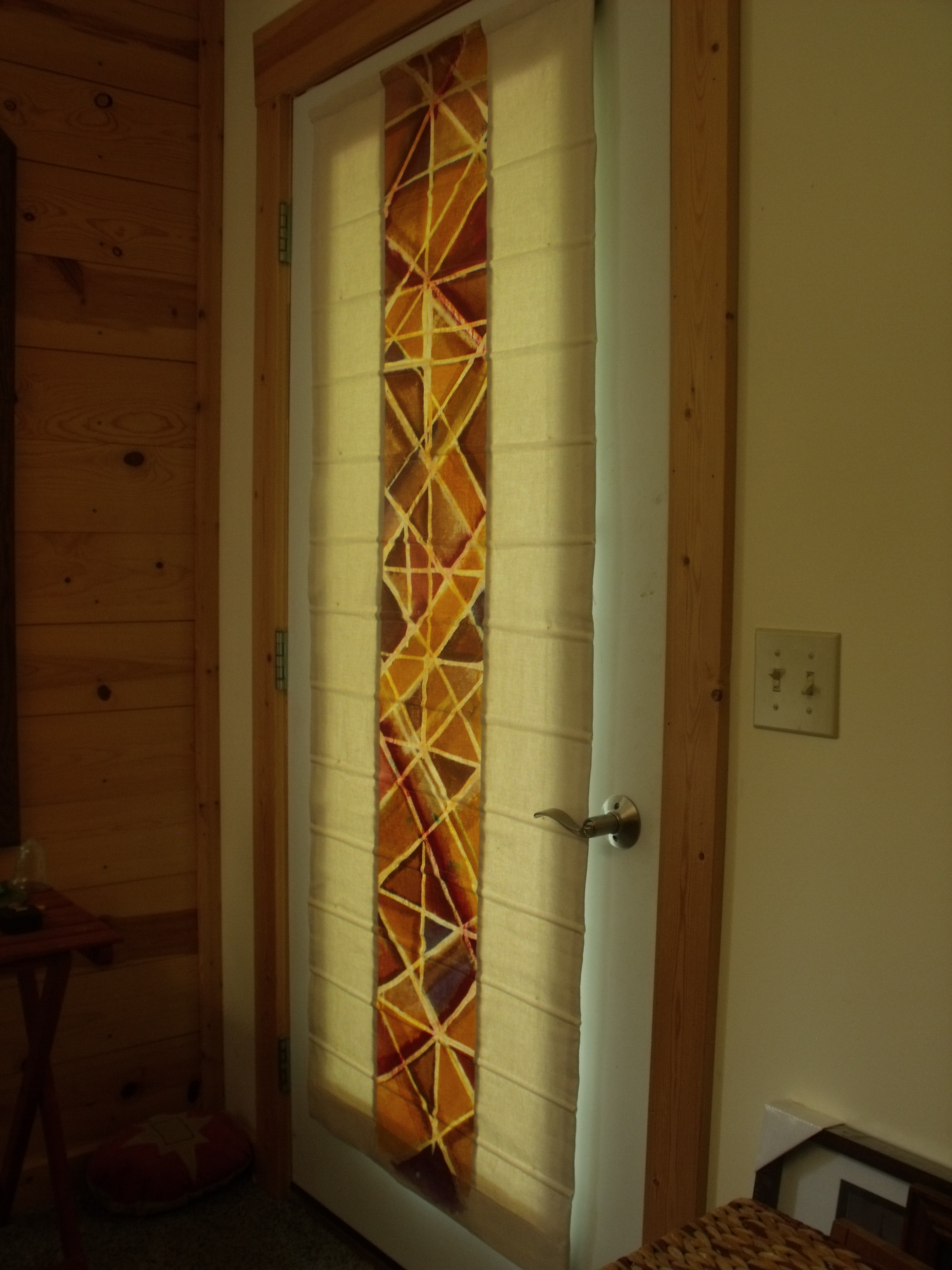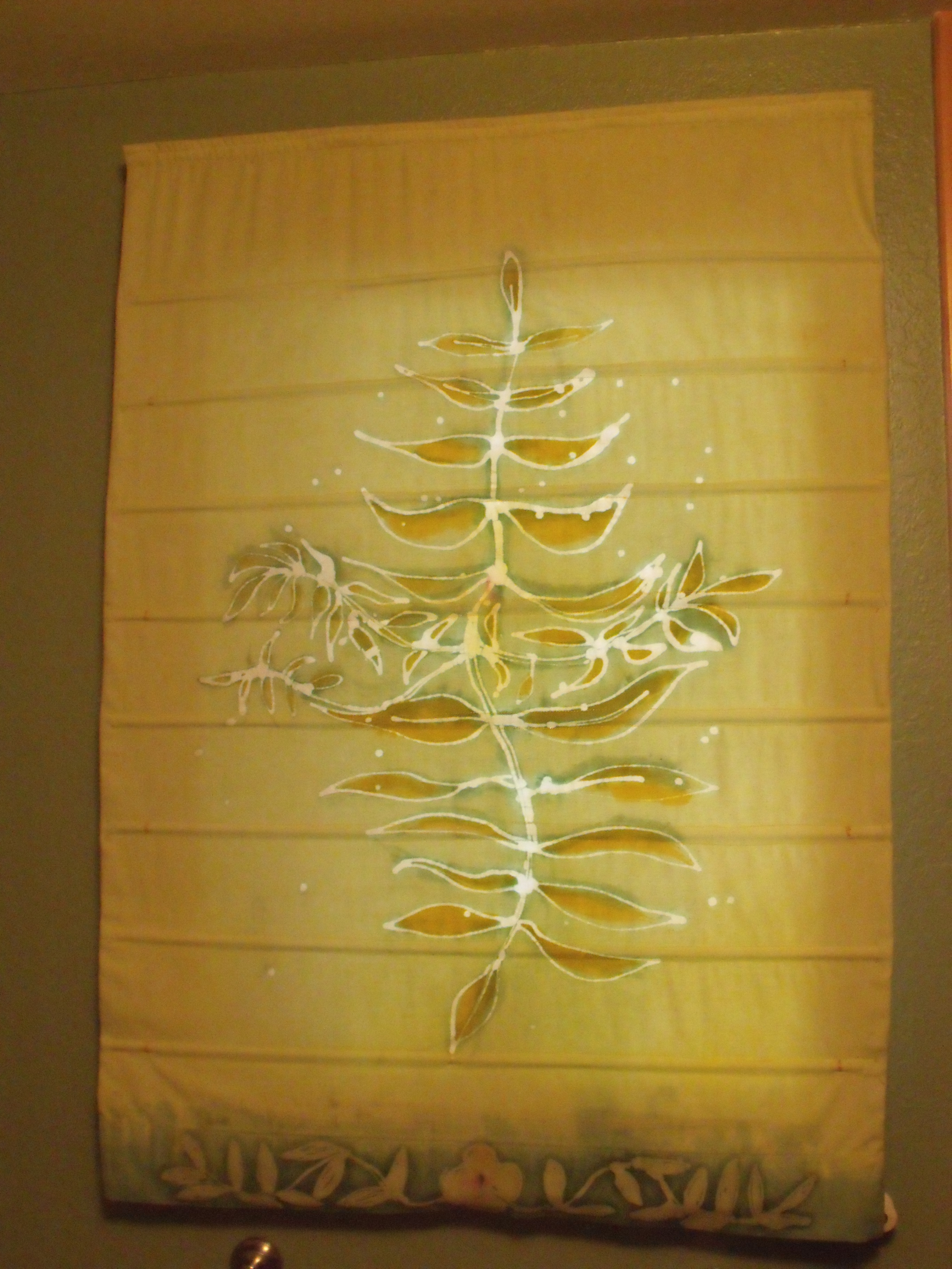 When I was young, I learned to sew from my Mother who was an excellent seamstress! Working with fabric has always fascinated me, sewing bits and pieces together, a puzzle much like my collage work. I have been creating Batik wall and window hangings along with hand painted Roman Shades. I’ll share more with you soon! mt